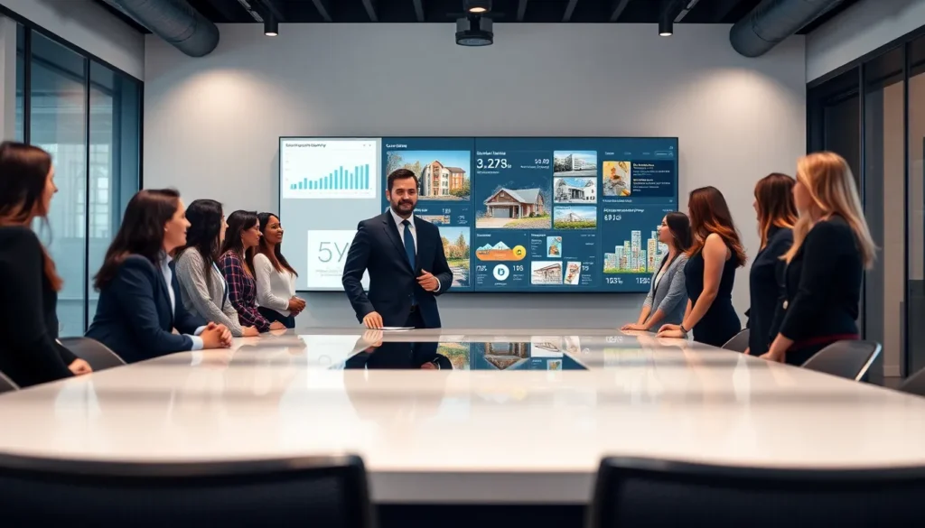 diverse real estate team collaborating in a modern office setting.